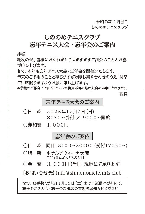 2025年12月7日(日)忘年会・忘年大会のお知らせ